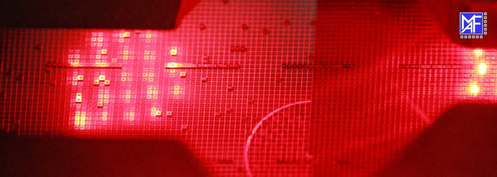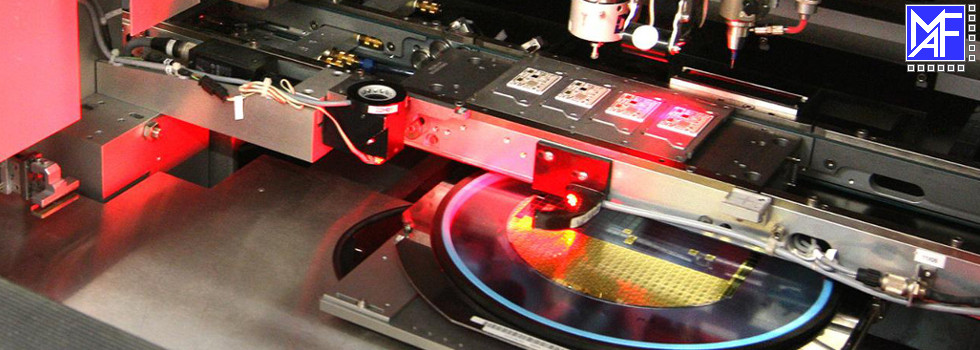 In the first step, the delivered wafers are applied on an elastic adhesive film with which it is possible to further handle the wafers in a safe way during the following process steps. Upon customer request we directly return the sawed stretched wafers on frames or in a clamping ring to the customer for further processing. Wafers are typically processed in a size between 4'' to 8''. It also is possible to process wafer segments.